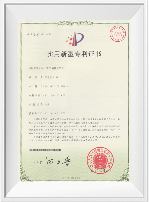 Patent Certificate