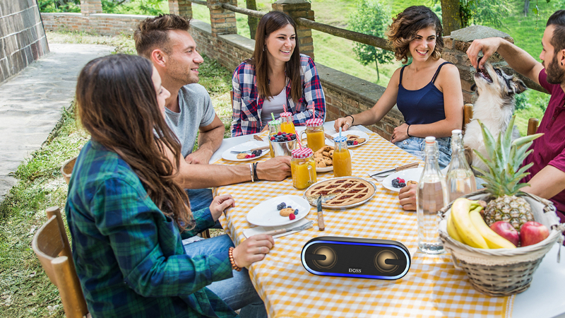 Equipped with dual 25W drivers and advanced DSP, the DOSS SoundBox Pro+P400 fills any space, ideal for outdoor adventures and home listening alike.