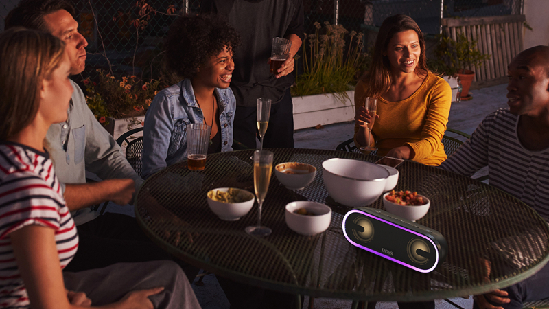 Designed with a backside passive radiator, this speaker maximizes sound pressure for deeper, richer bass. Press the Extra Bass button for enhanced low-end frequencies and an elevated music experience.