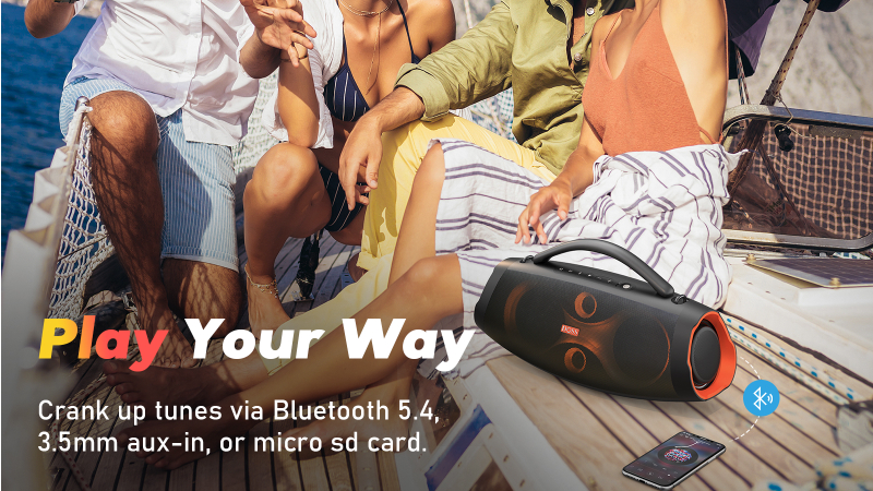 Built to withstand splashes and rain, the DOSS SoundBox Pro+ P400 is your go-to for any adventure. Enjoy high-quality audio at the beach, on a hike, or during water sports—rain or shine.